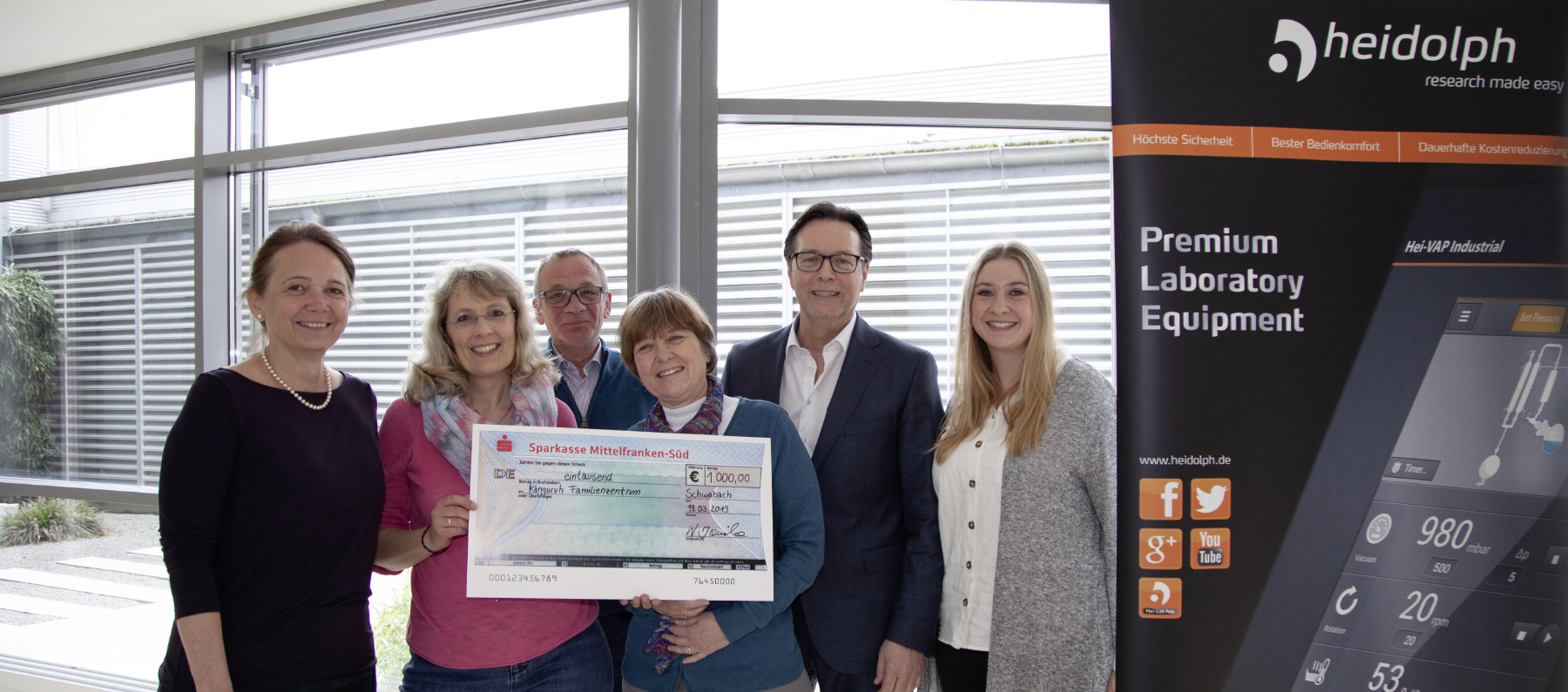 Heidolph Instruments GmbH & Co.KG is regularly involved in social projects and decided during the Christmas raffle 2018 to present the collected donations from the employees to the family center "Känguruh" in Schwabach.