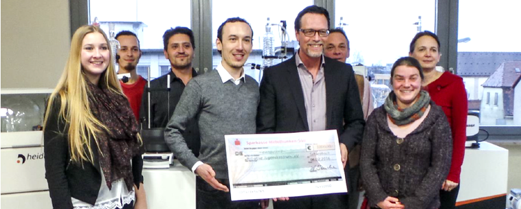 The Heidolph Instruments management tripled the outcome of the raffle. Thus, the initiators were able to hand over the proud amount of € 1,500 to Nadine Guggenberger and Traumzeit e.V. on March 2017.